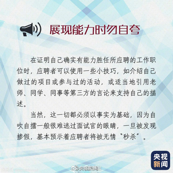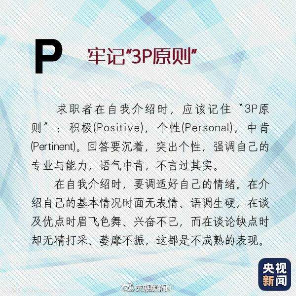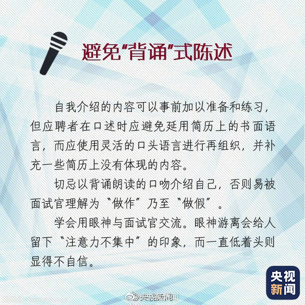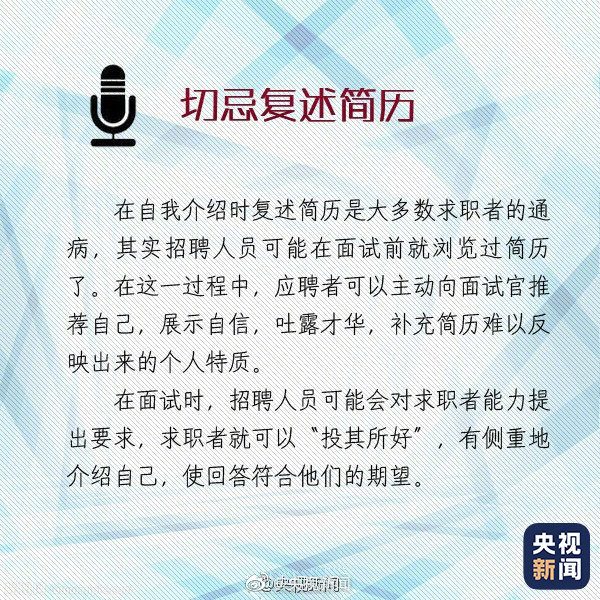 求职面试时的自我介绍有“四大注意”:①开门见山,简明扼要,不要超过3分钟。②实事求是,不可吹得天花乱坠。③突出长处,但也不隐瞒短处。④所展示的长处要与申请职位有关……快转给找工作的小伙伴↓↓
