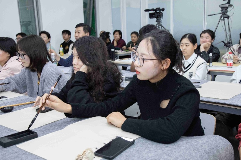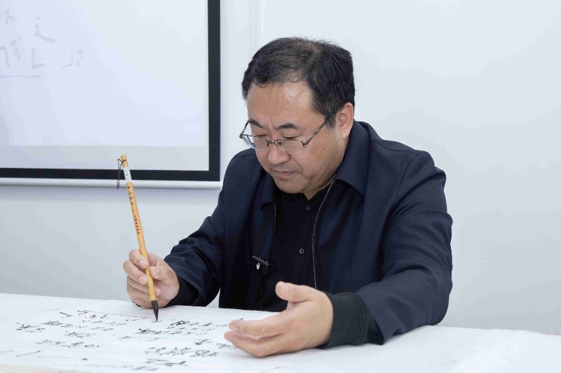 时间:2024-10-18 分享:今日下午,有幸聆听书法名家张志庆老师的书法课,实乃一场视觉与心灵的盛宴。在课堂上,张老师仿佛一位书法的魔法师,引领着众人踏入书法的奇妙境界。他一笔一划,皆蕴含着无尽的韵味;一撇一捺,都彰显着深厚的功底。正如苏轼所言“我书意造本无法,点画信手烦推求”,张老师的书法创作看似随性,实则是多年功底的自然流露。哪怕是一个小小的竖弯钩,张老师都如同雕琢珍宝般,不厌其烦地为大家进行无数遍的演示。他的专注与执着,如同匠人雕琢美玉,令人敬佩不已。 学员们个个全神贯注,学的津津有味。他们的目光紧紧追随着张老师的每一个动作,仿佛要将那书法的神韵全部汲取。张老师用他的才情与技艺,在纸上挥洒出一幅幅灵动的作品,仿佛是在诉说着古老的故事,传递着中华文化的博大精深。他的每一个动作、每一个眼神,都流露出对书法的热爱与敬畏,让人不禁沉浸在这美妙的书法世界中,久久难以自拔。书法之美,如诗如画,张志庆老师以笔为舟,引领我们畅游在艺术的海洋。愿我们都能在书法的世界里,寻得一方宁静,感悟人生的真谛,传承中华文化的璀璨瑰宝。让我们怀揣着对书法的热爱,在艺术的道路上不断前行,与美同行,绽放出属于自己的光彩。